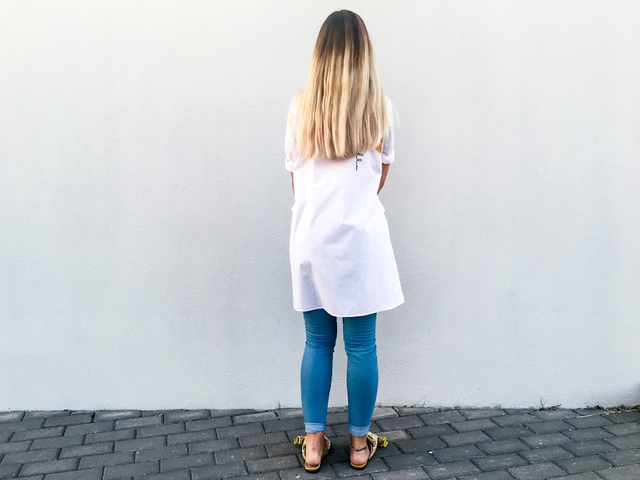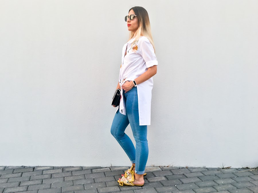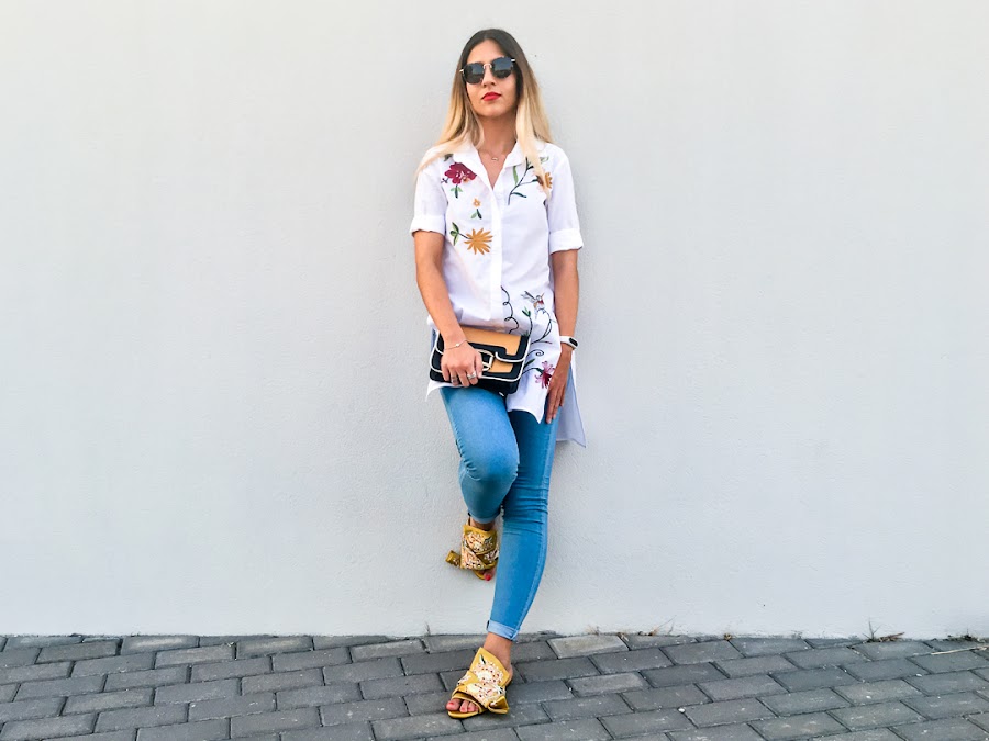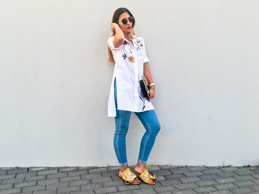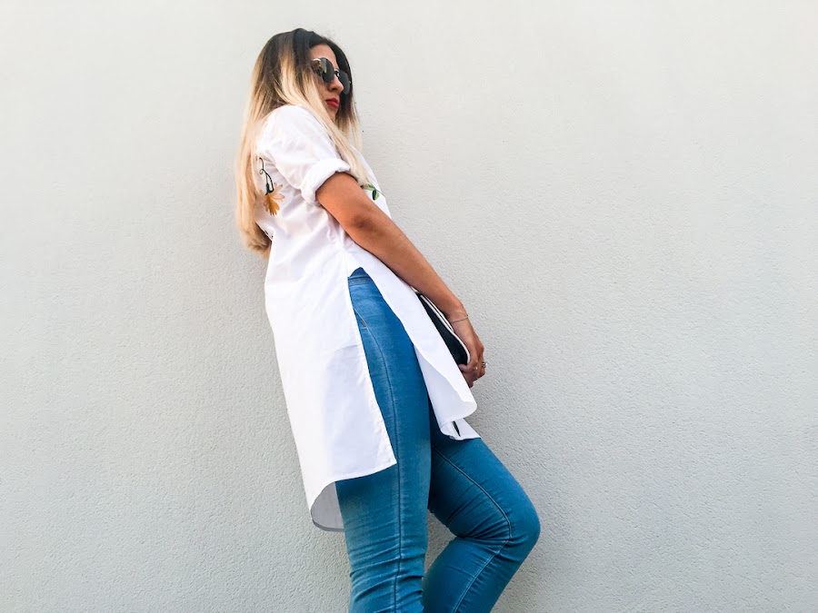 But while, I bring you a new look with a maxi shirt embroidered with side openingt. It is a very original shirt, very comfortable and of course, with my favorite trend, floral embroidery on the chest and back.
