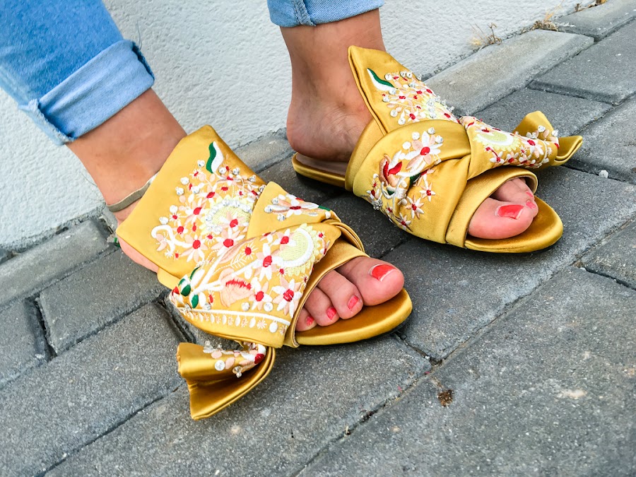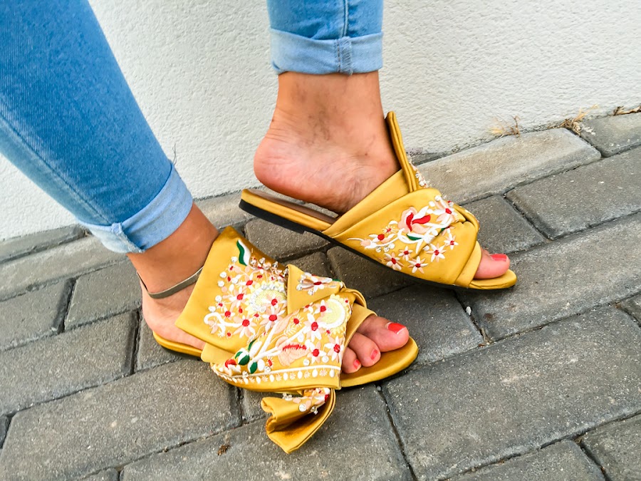 La he combinado con unos jeans skinny azul claro, mis sandalias más cómodas, también bordadas de JESSICA BUURMAN, mi bolso tricolor y un set de tres anillos de APHRODITE STORE que adornan mis dedos.