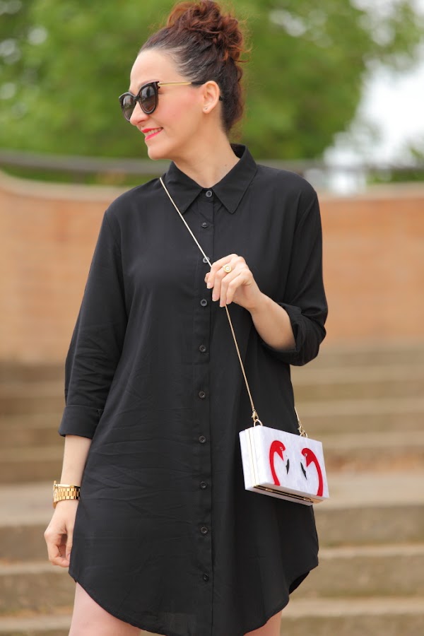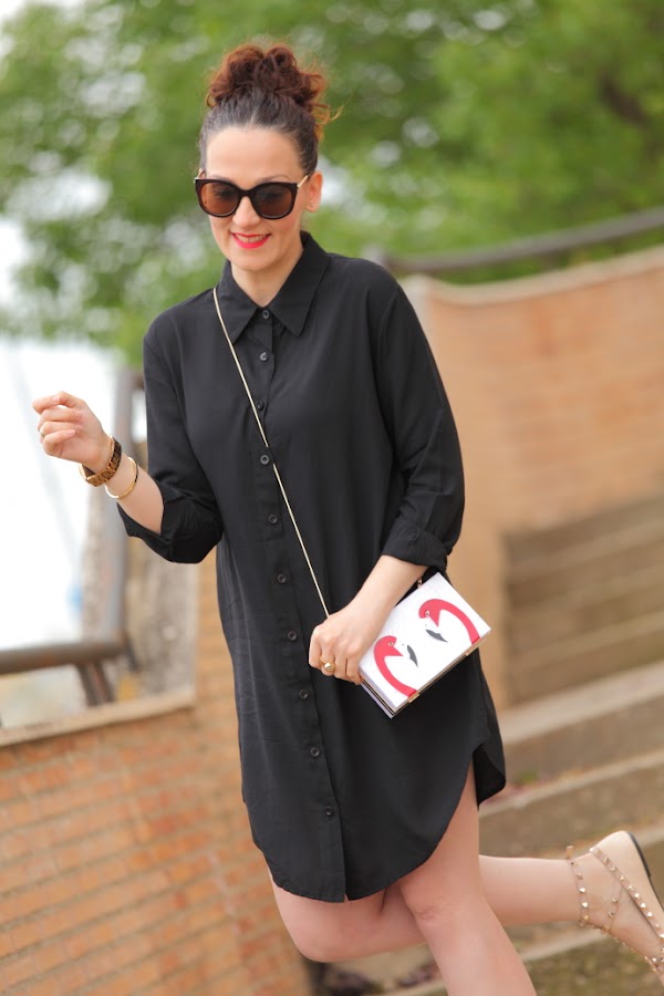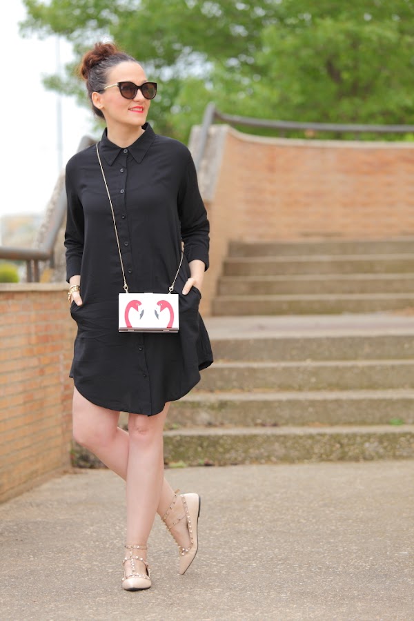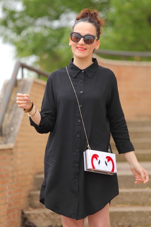 Hace unos días ya os comenté aquí que esta temporada me estaba dando fuerte por las camisas oversize. Me resultan muy cómodas y los mejor que es que se pueden llevar tanto de vestido como con pantalones. Hoy os enseño esta camisa negra que fue un auténtico flechazo cuando la vi, las que me conocéis desde hace tiempo ya sabéis cuanto me gusta el negro. Os la enseño con zapato plano aunque con taconazo queda ideal, así que más adelante ya os mostraré un look con este combo. Pero lo que más me gusta de este outfit es como resalta con la camisa mi nuevo clutch de flamencos. Lo he comprado para un evento familiar que tengo dentro de unos días pero con lo que me gusta no me he podido resistir a estrenarlo antes.