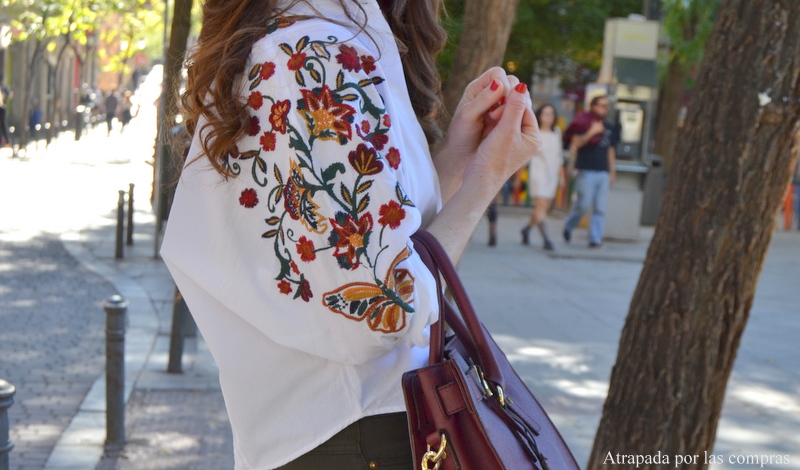 Es increíble que estemos en pleno mes de octubre y sigamos disfrutando de unas temperaturas tan buenas. Yo estoy encantada porque así todavía puedo olvidarme de looks cebolleta y puedo seguir vistiendo estilismos como el de hoy. Llevo mi nueva camisa con bordado de flores, me gusta tanto que la estoy utilizando tanto para ir a la oficina, como en outfits más relajados como este con mini falda vaqu ...