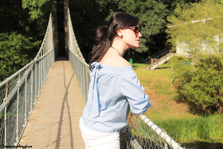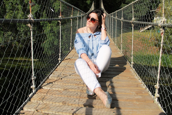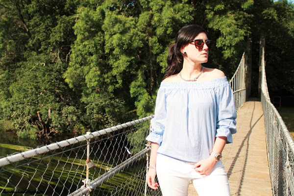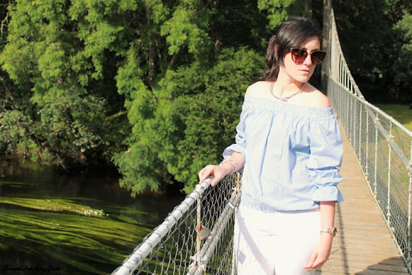 Today I show you a look in shades of blue and white, specifically with this reversible blusita of my online shop, comfortable to wear with 2 trends in 1, on the one hand shoulder to fashion this summer so air and streaks that never never go out of fashion. They have ruffles on the sleeves and loop that can go both forward and backward which will allow to create two different looks. You have available on the web at one size.