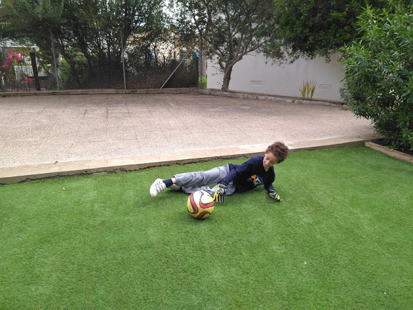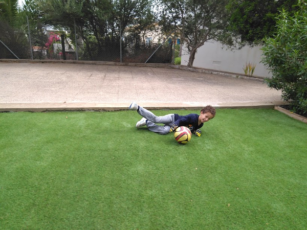 Y como he dicho en un día de fúltbol, que no puede faltar en nuestras vidas. Y esta vez fue con la camiseta calavera pirata que tanto le gusta. Aunque lo de tirarse por el suelo le da igual, a mi no tanto!!!