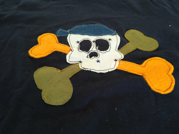 Esta camiseta con una calavera pirata, la hice para el cumpleaños de Jordi, ya que le hicimos una fiesta pirata, y siempre me gusta hacerles una camiseta de acuerdo a la temática.