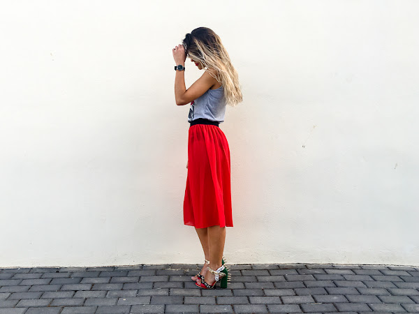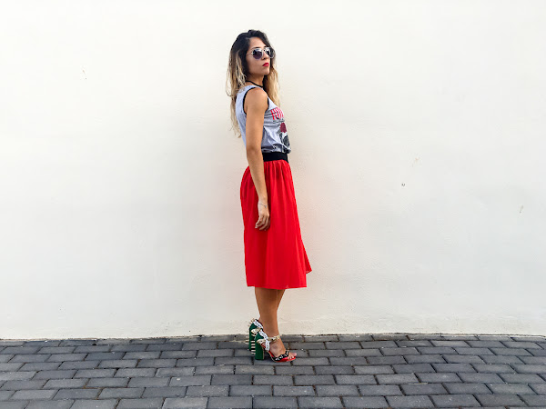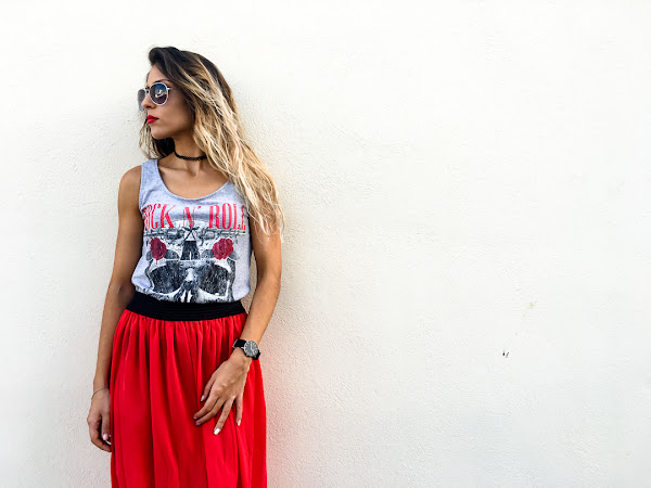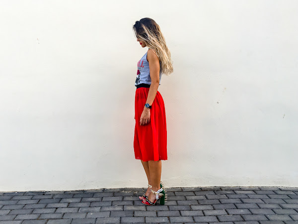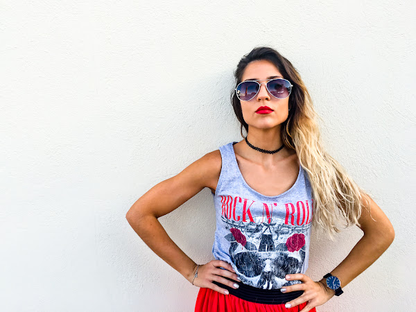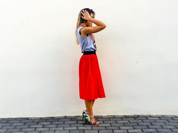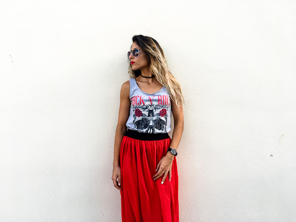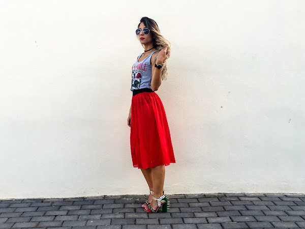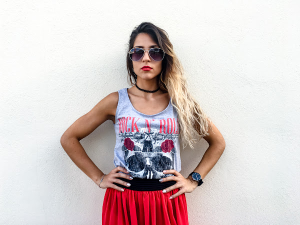 La he combinado con una falda de tul roja de YOINS y con mis sandalias más rockera de JESSICA BUURMAN!