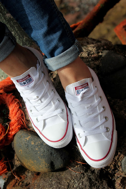 No es de extrañar que despertará la creatividad y será todo un éxito entre los amantes del DIY y fashionistas consiguiendo con ello prendas exclusivas y de total tendencia. La camiseta protagonista de mi outfit de hoy es de Pull and Bear, me sedujo nada más verla en su página web. En cuanto tuve la ocasión me pasé por la tienda física más próxima para verla de cerca y terminé por llevármela como pueden ver en este sencillo y cómodo look con jeans y Converse para dar un paseo por el pueblo costero de Sardina del Norte.