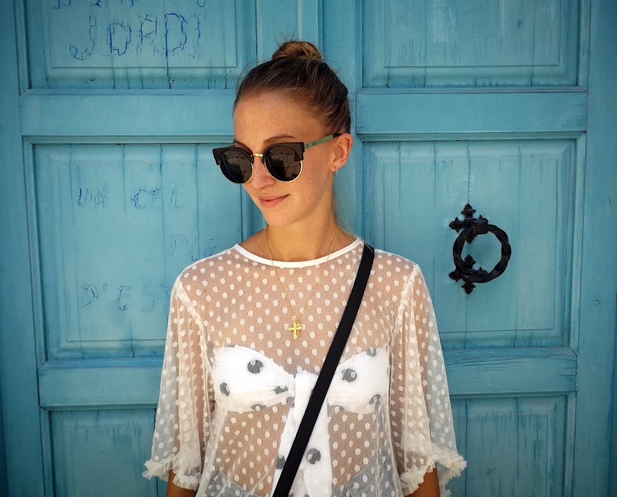 Para este paseo por Altea he elegido un look casual donde el protagonismo se lo quería dar a esta blusa transparente de plumeti, que me resulto preciosa y muy original y que encontré por casualidad en una tienda en la playa la Fosa de Calpe Boutique Bundi.