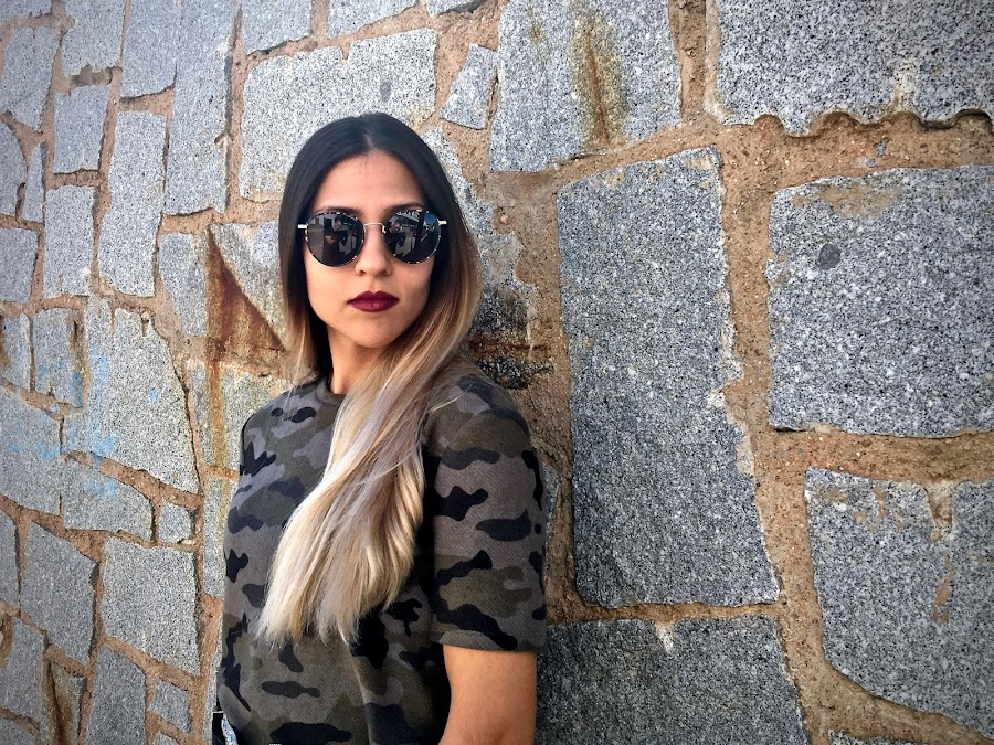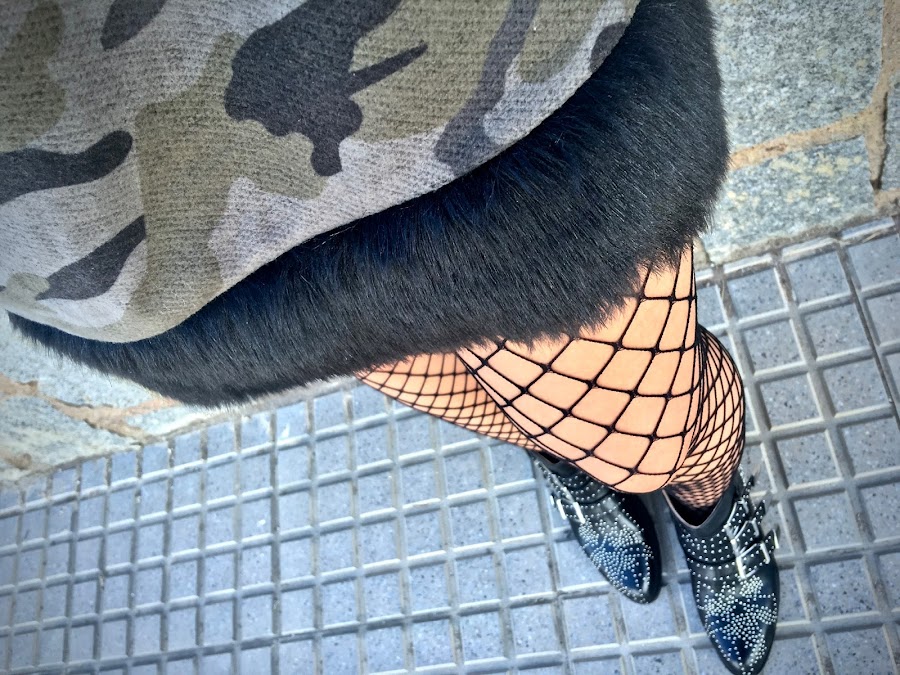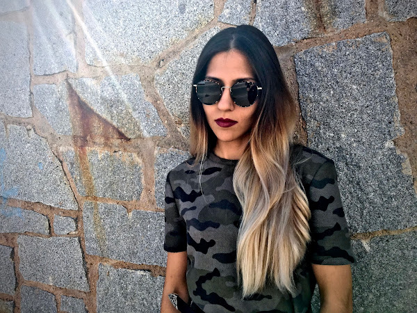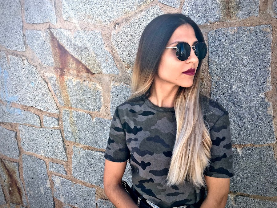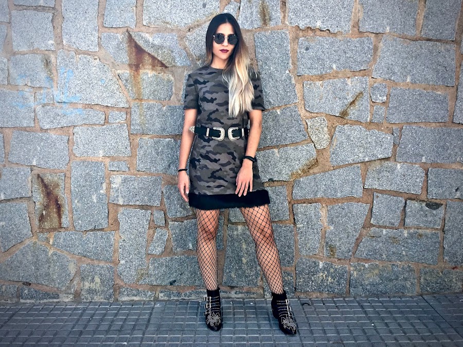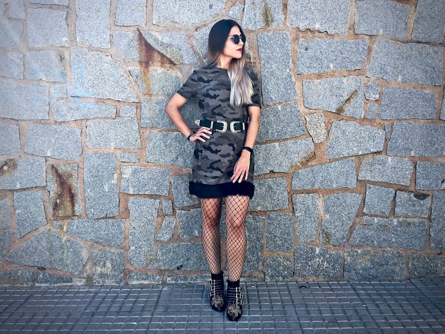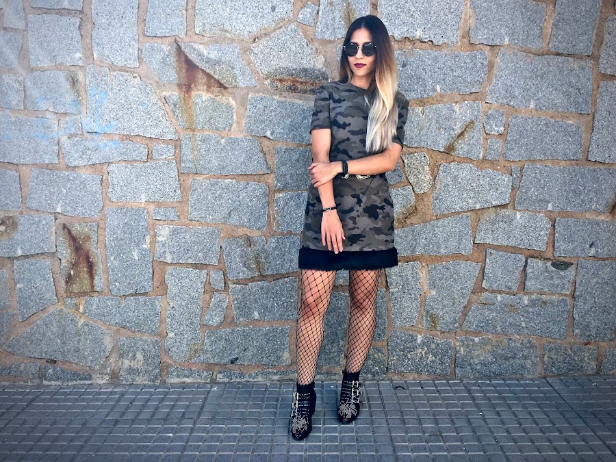 Es de camuflaje, de manga corta pero con una tela gordita, perfecto para el otoño (aunque la temperatura siga siendo muy de verano). Lo que más me gusta es el detalle del borde del bajo que es de pelito negro, mezclando tendencias.