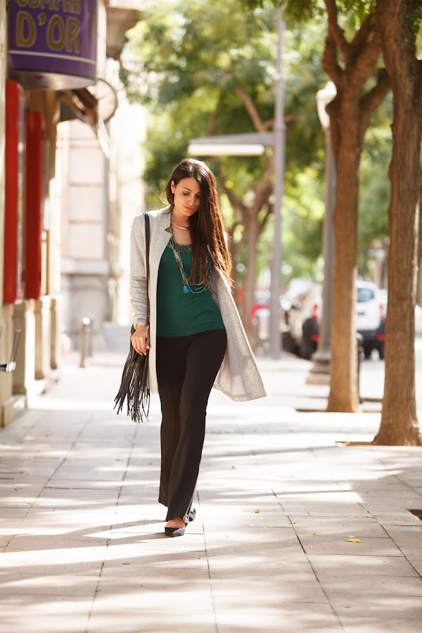 Aunque un poquito despeinada por el viento... ¡Me encanta este look! Después de muchos años... ¡De nuevo con un pantalón campana! Pero con un look más sofisticado. ¡¡Espero que os encante la combinación de piezas y colores!!