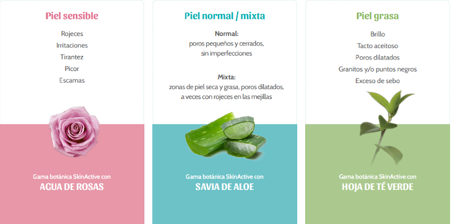 Cada tipo de piel presenta unas características distintas que nos darán la pista definitiva para elegir la gama SkinActive adecuada: