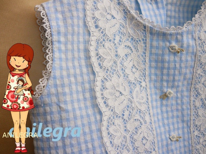 y en lugar de forrarlo lo rematé con una puntillita muy fina alrededor de las sisas y el escote ,