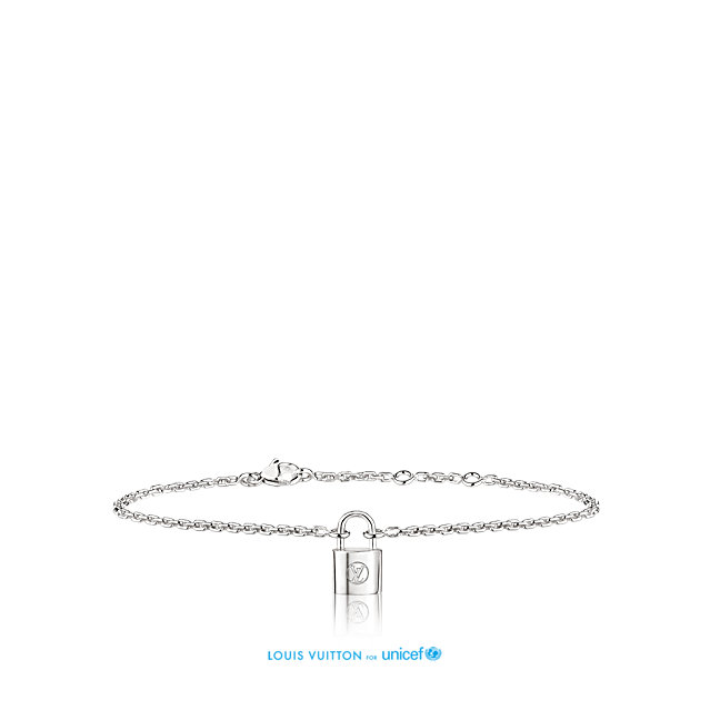Louis Vuitton ha diseñado especialmente un colgante y una pulsera en plata con el característico candado de la firma, por cada venta Louis Vuitton donara 200€ a Unicef para ayudar a todos los niños del mundo que están en riesgo ya sea por conflictos y guerras, enfermedades y desastres naturales.