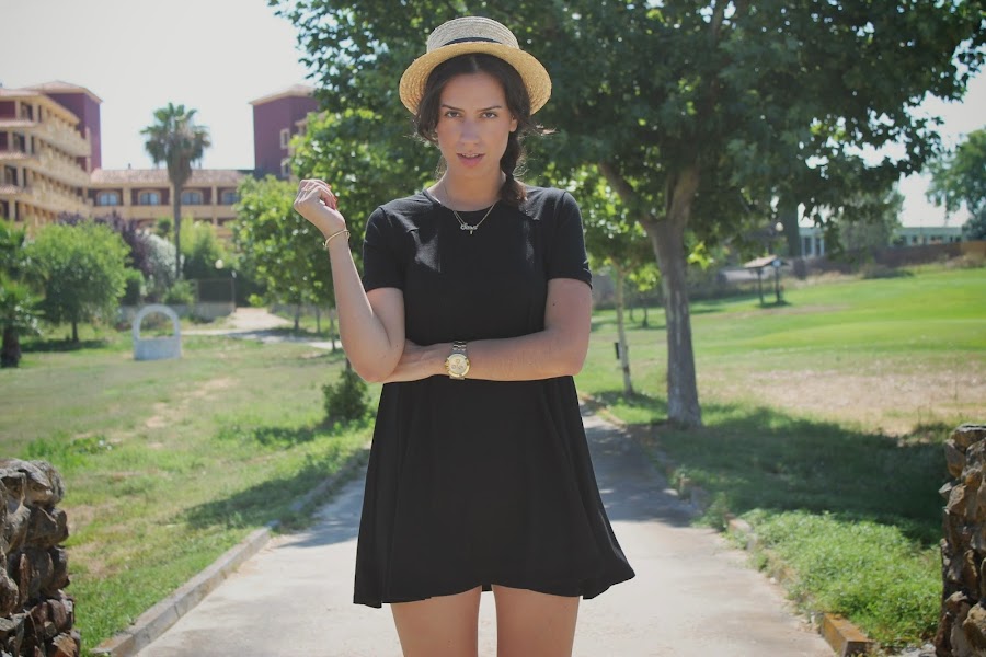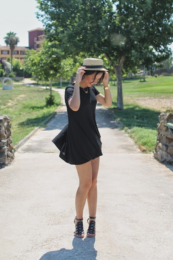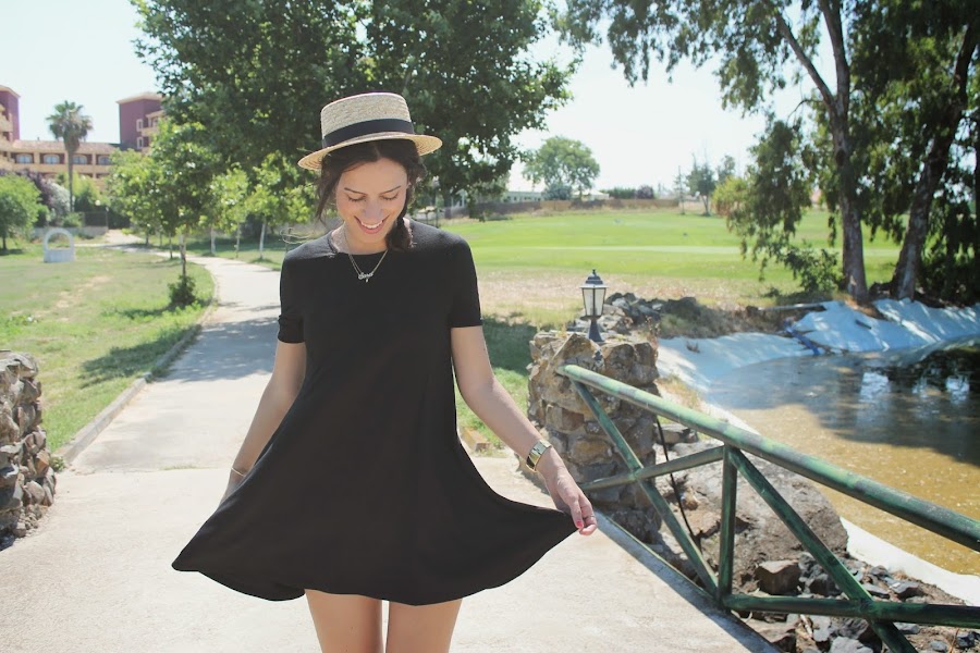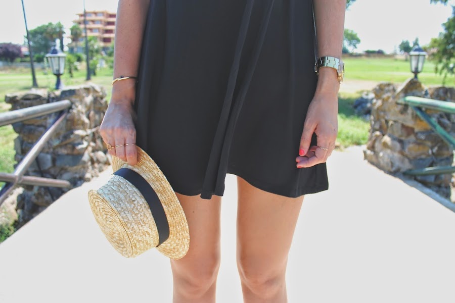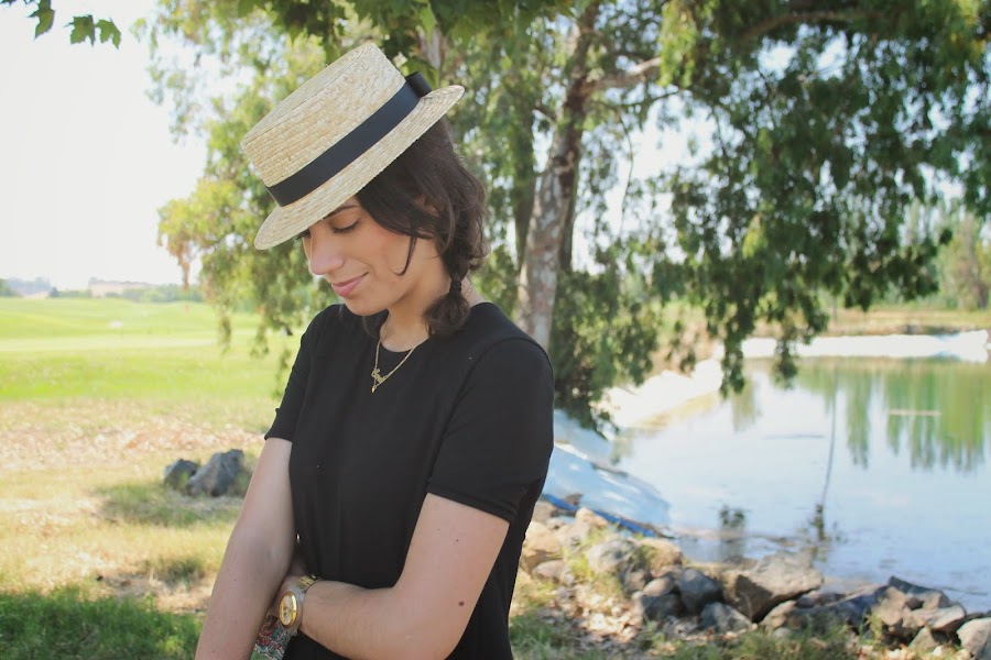 Mi amiga Susana es diseñadora de tocados, me encanta y valoro mucho su trabajo. Soy muy fan de los sombreros para mi día a día, por eso me pareció genial tener uno de sus canotier. Aunque su especialidad es decorarlo con preciosas flores, ella que sabe mi gusto lo hizo con cinta negra terminada en lazo. Decidí estrenarlo con un sencillo vestido negro el viernes pasado, y le quedan muchos looks veraniegos.