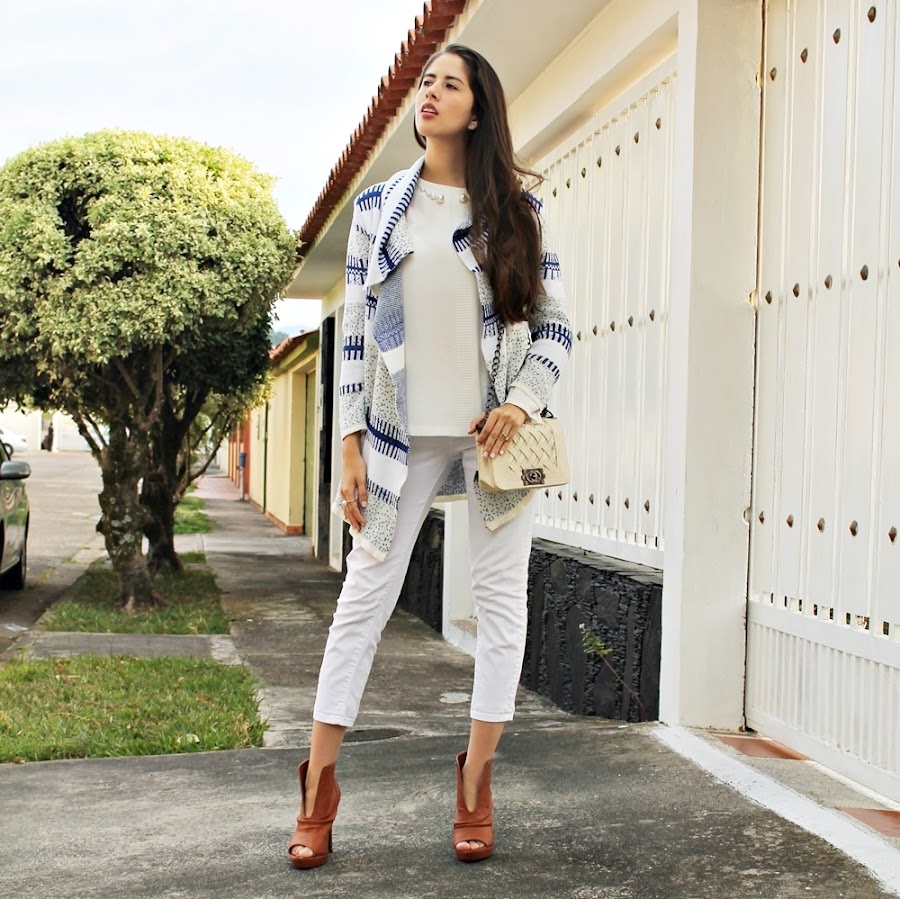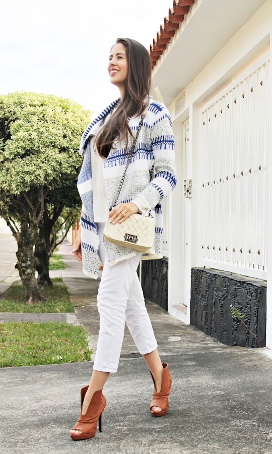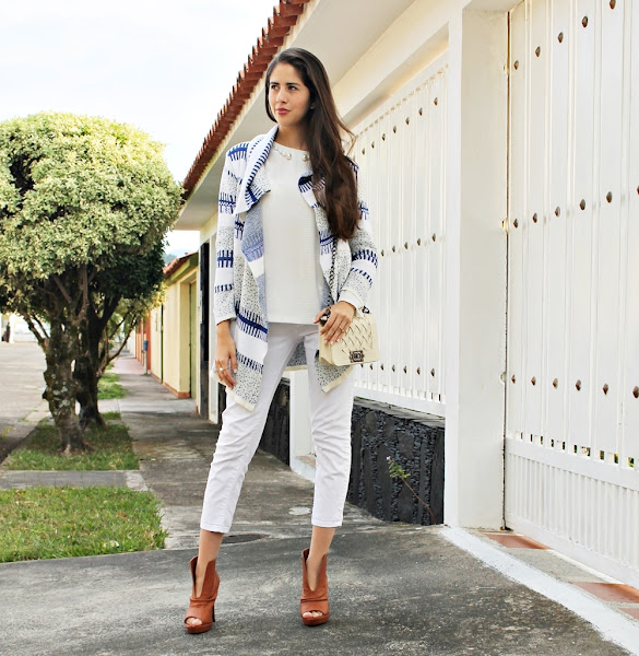 El look es muy simple y sencillo, como esos que normalmente me gustan. Un total look en blanco nunca falla, la capa y los botines dan ese aire mágico y una preciosa cartera y lindos accesorios para complementar ¿Les gusta? Besos, Luci.