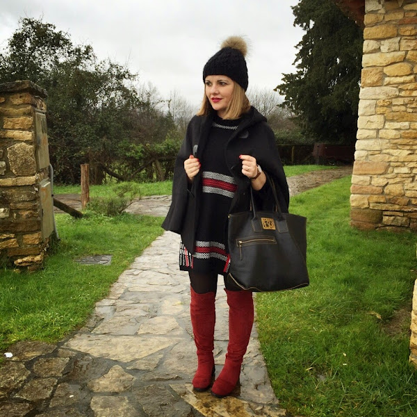 En este caso la combiné con un maxi jersey de lana, es lo que tiene ser bajita, a modo de vestido de la misma web on line. Repito de nuevo botas, no sabéis lo cómodas y calentitas que son, creo que voy a acabar con ellas de tanto ponerlas.
