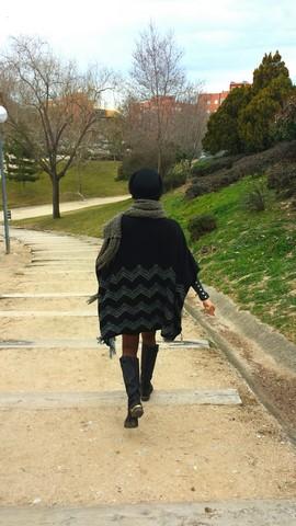 Me encantó este poncho de Easy Wear conseguido en las Rebajas de El Corte Inglés por sus motivos zigzagueantes y por su comodidad. Al ser tan ancho te lo metes por la cabeza, sacas los brazos y listo.