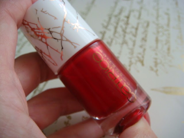 Los esmaltes de Catrice me gustan muchísimo, por su estupenda relación calidad-precio, por su pincel aplicador, sus colores y su duración. El Alluring Red contiene 10ml y está fabricado en Italia. Su precio fue de 2.99???, que creo que es estupendo.