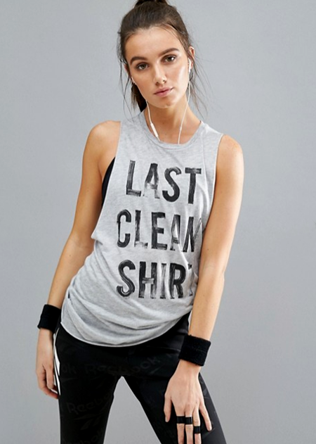 Una camiseta de tirantes con abertura lateral. Son super cómodas y sirven tanto para hacer deporte como para utilizar para la piscina o playa. Soy adicta a este tipo de camisetas en verano. Ésta es de Reebok.