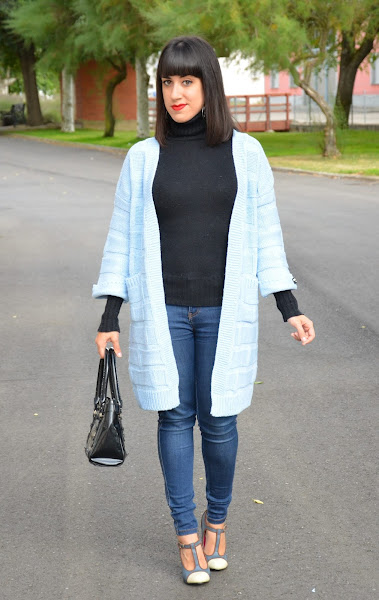 Por aquí por el norte no nos ha quedado de otra, el frío ya llegó y ya apetece ropa gordita y amorosa así que aproveché para estrenar este cardigan de color light blue de Rosegal. Es de manga tres cuartos pero muy abrigado con un jersey debajo.