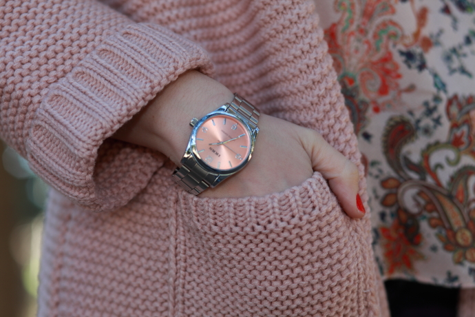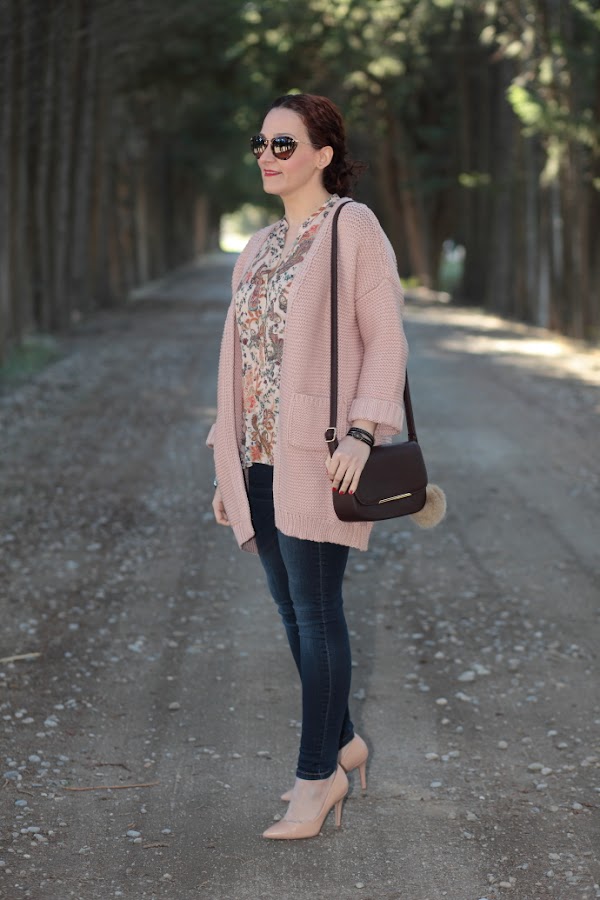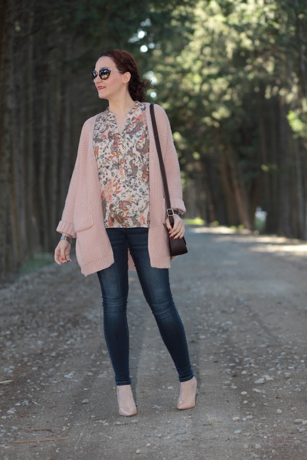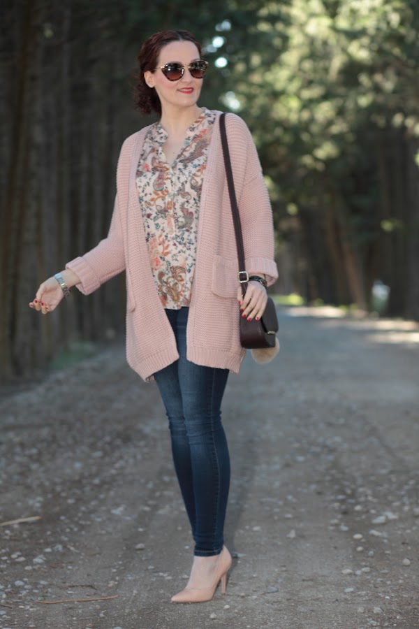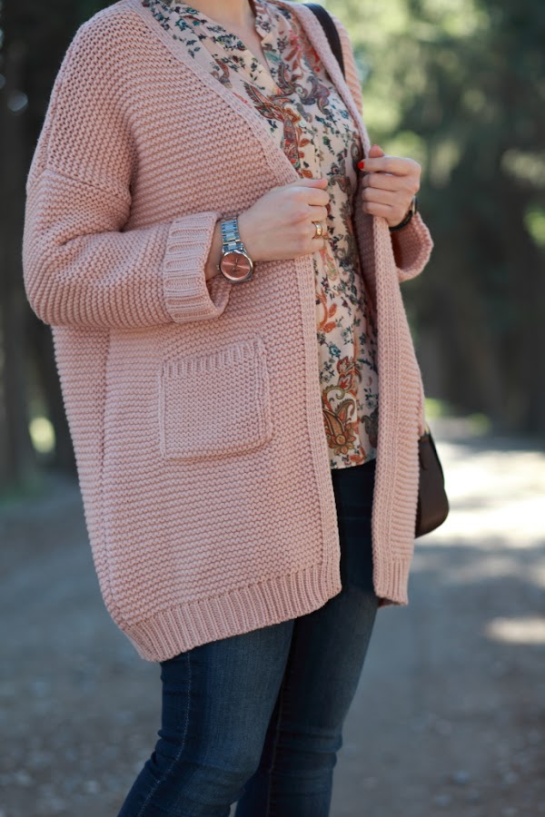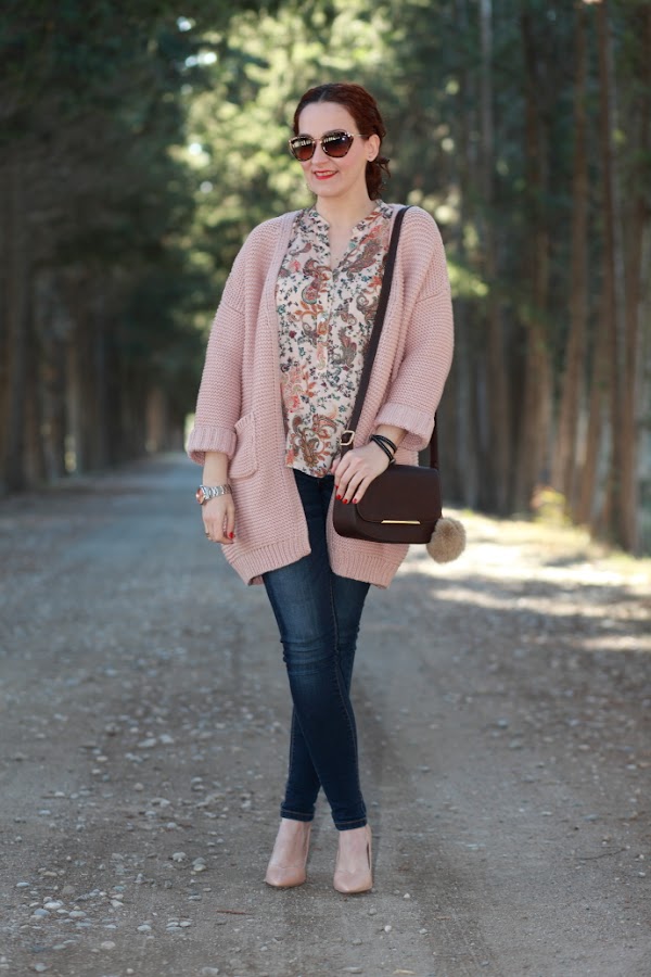 ¡Feliz Año Nuevo! Después de unas mini vacaciones ya estamos de vuelta con las pilas super cargadas para afrontar el nuevo año. Hoy os enseño un look con una chaqueta de punto de Shein que me tiene enamorada. Me la cogí antes de navidades y llegó justo a tiempo para poderla estrenar estos días. Como ya os he comentado anteriormente, me chifla el punto y lo que sentí al ver esta chaqueta fue un flechazo. Me encanta el punto gordito que tiene y el tono nude la hace aun más especial. Las fotos son del día que la estrené, me la puse con una blusa con estampado paisley y jeans pitillo. Cerré el look con unos zapatos de salón nude y mi nuevo bolso marrón chocolate. Esta vez opté por hacerme un moño bajo desestructurado, soy muy fan de este tipo de recogidos y aunque suelo llevarlos bastante para ir a trabajar pocas veces los veis por aquí.