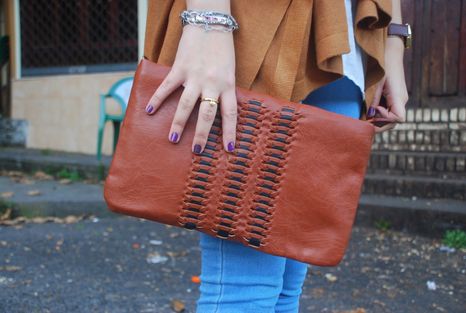 Como complementos clutch marrón de hace mil temporadas y mi reloj favorito.