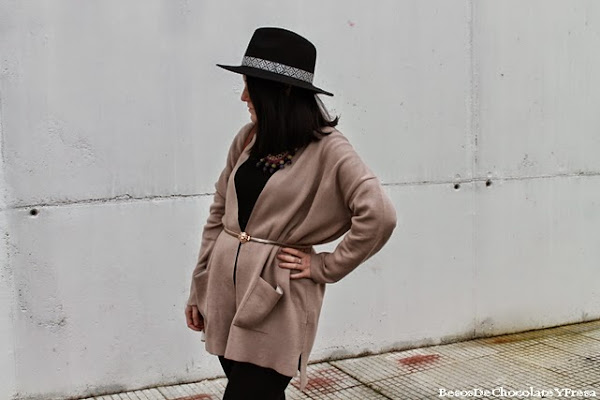 Today I show you a look at nude tones with this cardigan Cortefiel that had not yet taught by here.The combined it with black jeans and sweater basic black, brown boots with matching bag, multicolor necklace to break the monotony of colors and my Lefties hat I love !!