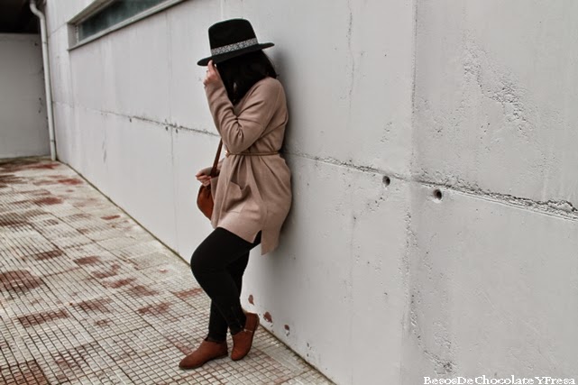 Hoy os enseño un look en tonos nude con esta cardigan de Cortefiel que aun no habia enseñado por aquí.La combiné con jeans negros y sweater también negro básico, botines marrones a juego con el bolso, collar multicolor para romper la monotonía de colores y mi sombrero del Lefties que me encanta!!