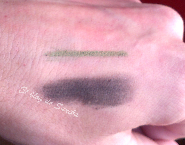 El delineador verde es un lápiz automático muy cómodo y como la sombra pigmenta un montón, es muy cremoso por lo que es muy agradable de usar y se difumina también muy bien pero lo que me ha sorprendido es que también pigmenta muy bien en la línea del agua. Solo se le puede encontrar una pega si es que se le puede considerar una pega y es que a la hora de desmaquillar sale con cierta dificultad, vamos que cuesta un poquito eliminarlo.