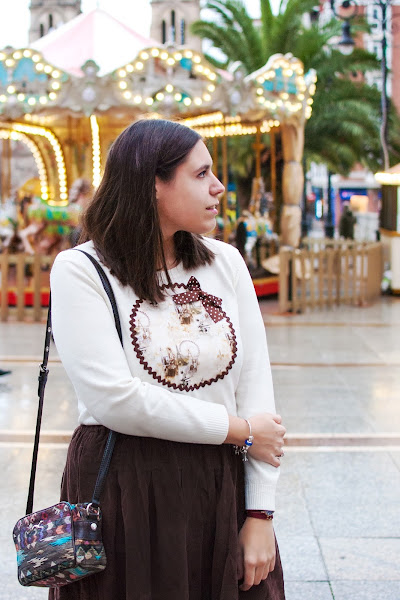 No hay mejor manera para teletransportarse a la infancia que ver un carrusel en mitad de un parque. Por un instante, ese espacio se convierte en mágico y a la mente llegan un sinfín de bonitas imágenes vividas en él. ¡Cuánto habré disfrutado yo en todas las fiestas, me encantaba! Durante este carnaval, fue la localización perfecta para fotografiar este look con un toque parisino que ya sabéis que adoro un montón. Esta vez, acompañé uno de mis jerseys favoritos con esta bonita y calentita falda de pana de Rosegal, y añadí unos toques de color en los complementos para darle un aire más dulce. Espero que os guste y feliz semana