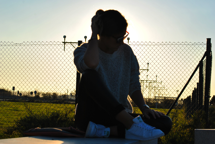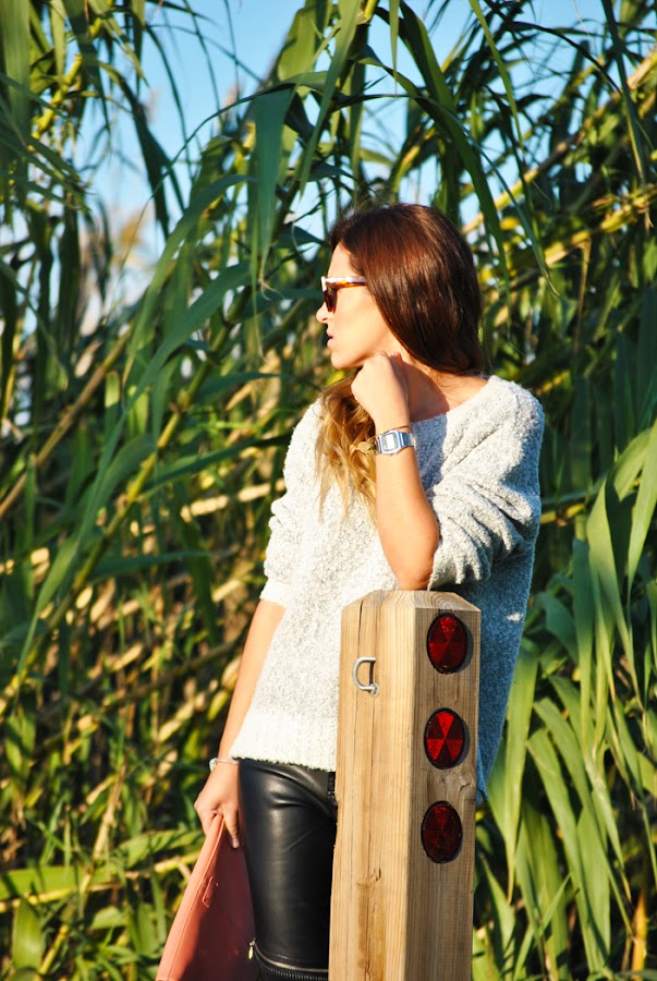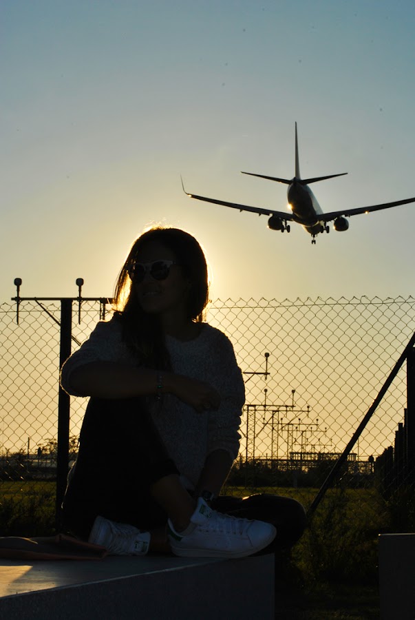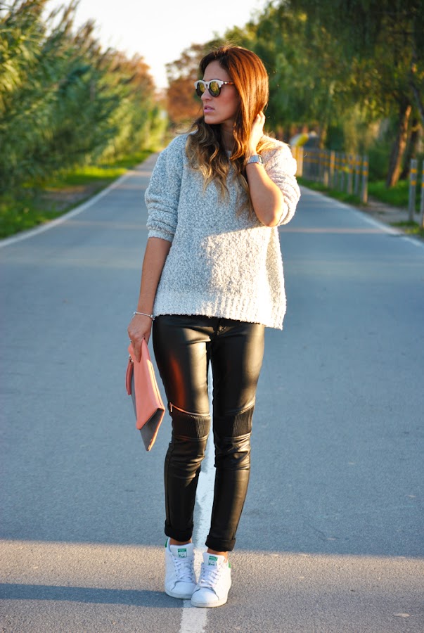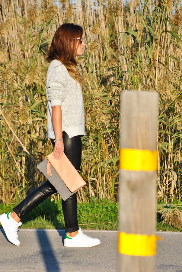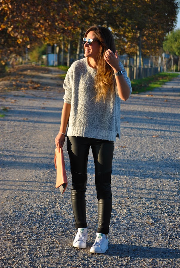 ¡Buenas tardes! Hoy traigo las fotos que hicimos en un día de spotting en el aeropuerto del Prat de Barcelona. El look es deportivo y cómodo ideal para una larga jornada de trabajo. Para el outfit combiné pantalones moteros con sweater oversize gris, deportivas Stan Smith, un básico en mi día a día, y como complementos las gafas de sol bicolor y clutch en tonos grises y rosas.