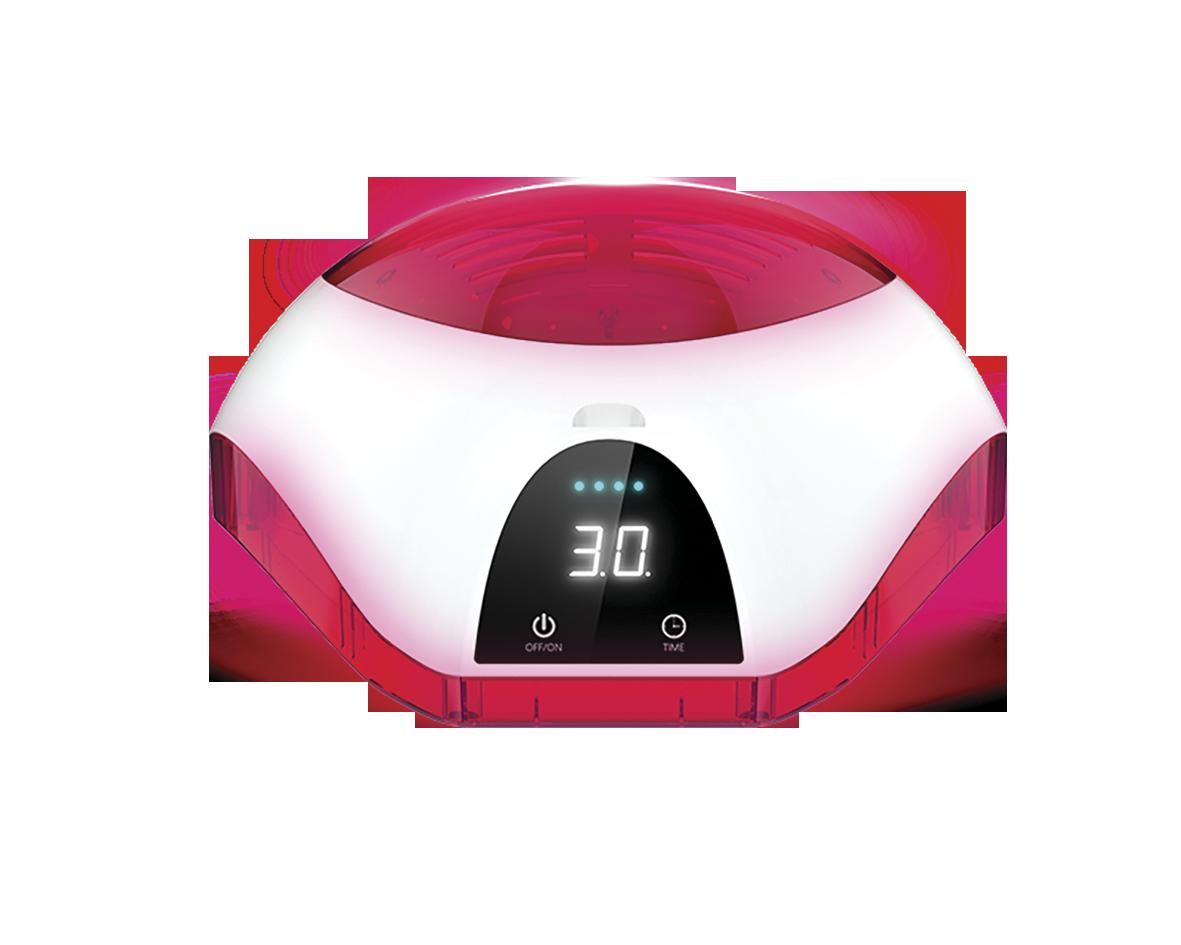 Un sistema basado en una aplicación de diodos led (80 diodos en su interior) con luz laser (LLLT) para uso doméstico, con un diseño moderno, con la comodidad de que las manos quedan libres y se puede hacer otra cosa mientras se está usando.