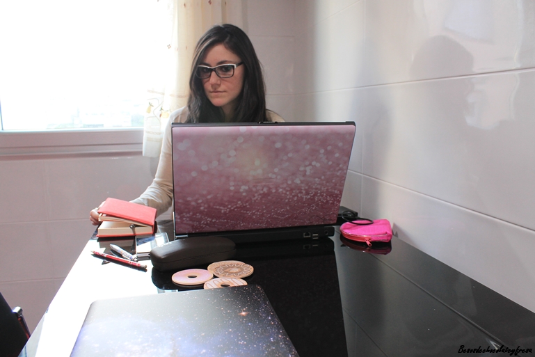 Podéis elegir un diseño de los que tienen o bien hacer una personalizada con vuestras fotos preferidas o incluso con clipart como el que le puse yo a la mía. Como en casa tenemos dos portátiles dije, que mejor ocasión que darles un aire diferente y fresco, me decanté por uno en rosa de brillos como os dije antes con clipart de infinito forever y otro de la galaxia, más acorde para el portátil de mi chico.