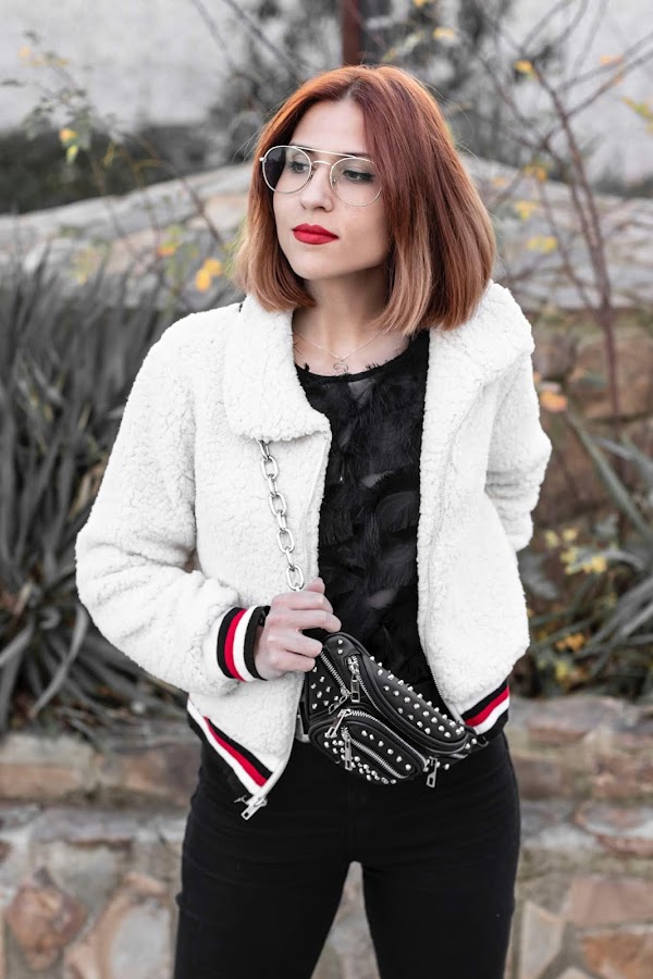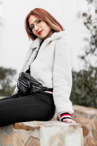 Bueno, hoy os traigo un nuevo look y un nuevo abrigo de borreguito súper calentito!! Así el invierno se pasa mucho mejor! Además, me encanta el tacto de la tela porque es súper suave! En color clarito y con el contraste de los puños y bajo en tonos rojo, negro y blanco que me encanta!! Es de POP JULIA, al igual que las botas, de estilo militar en tonos rojos y negros.