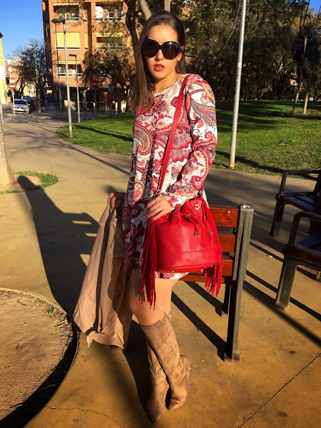 ¡Buenas noches amores! Empezamos nuevo mes, y la verdad es que febrero se me ha pasado volando. Hoy os muestro mi nuevo vestido con estampado de cachemira de Mentha Shop, del que me enamoré nada más verlo. Lo combiné con mis botas beige, mi trench y mi nuevo bolso rojo de flecos. Un look muy femenino y cómodo gracias al corte del vestido.