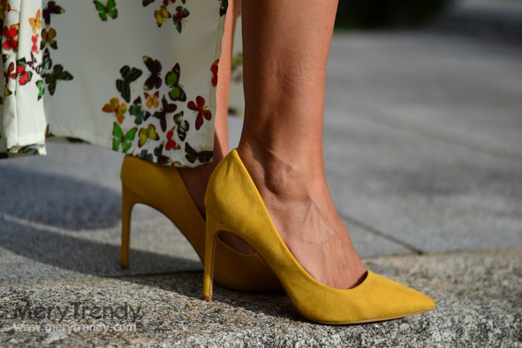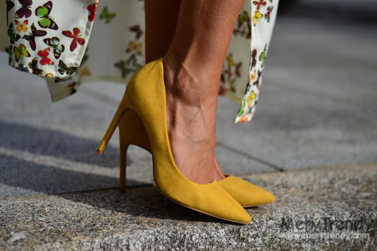 Los zapatos son de MaryPaz y, según tengo entendido, para este otoño-invierno, viene mucho el ante y como me gusta llamar la atención, nada mejor que un buen taconazo en amarillo.