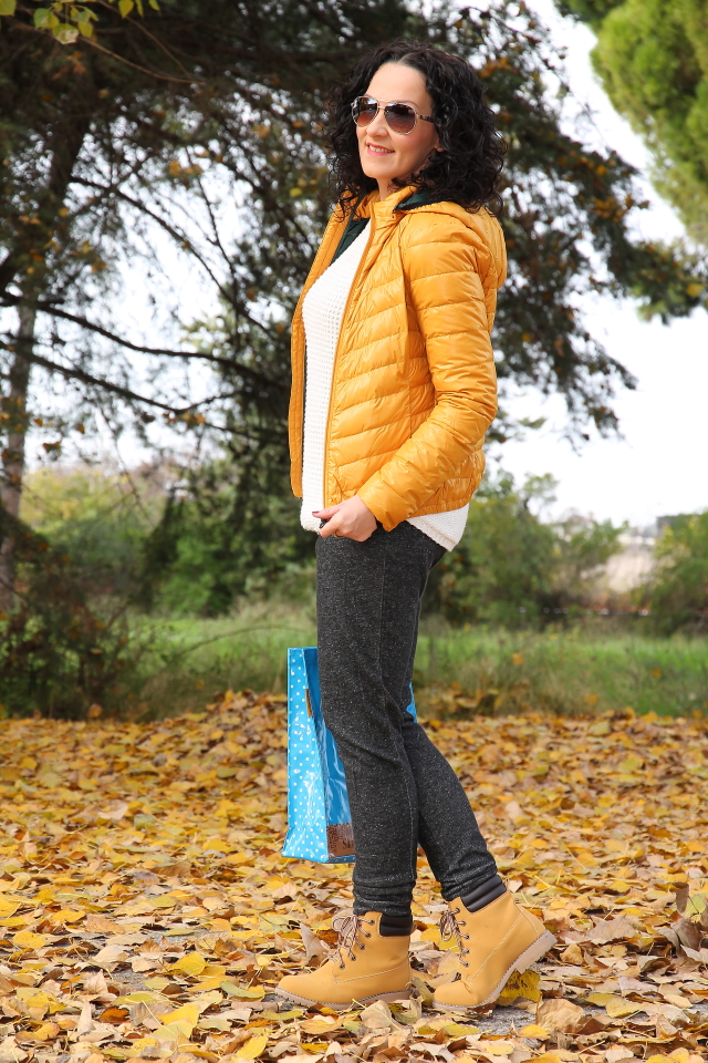 Cada estación tiene su encanto, en el caso del otoño los colores que nos dejan las hojas al caer me encanta. Me gusta disfrutar de los paisajes tan bonitos que se forman y la mejor manera para ello es dar largos paseos con la inmejorable compañía de mi marido y Nico o alguna vez de mi madre. Este outfit es perfecto para esos momentos, un look muy cómodo con cazadora de plumas, jersey de punto, pantalón de jogging y las botas estilo Panama Jack que me compré en San Sebastian durante mis últimas vacaciones.