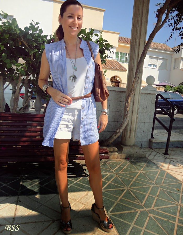 A este "vestido camisero" le dí una vuelta de tuerca para lucirlo de una manera sencilla pero con un toque chic aportando al look complementos plateados.