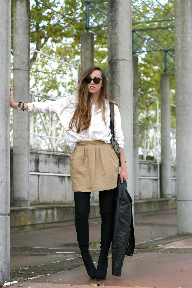 I"m wearing: Skirt/Falda - Stradivarius(FW14-14)HERE/AQUI, Boots over knee/Botas caña alta - Marypaz(Old), Shirt/Camisa - Chicwish(FW14-15)HERE/AQUI, Bag/Bolso - Zara(Old), Jacket/Chaqueta - Bershka(Old).