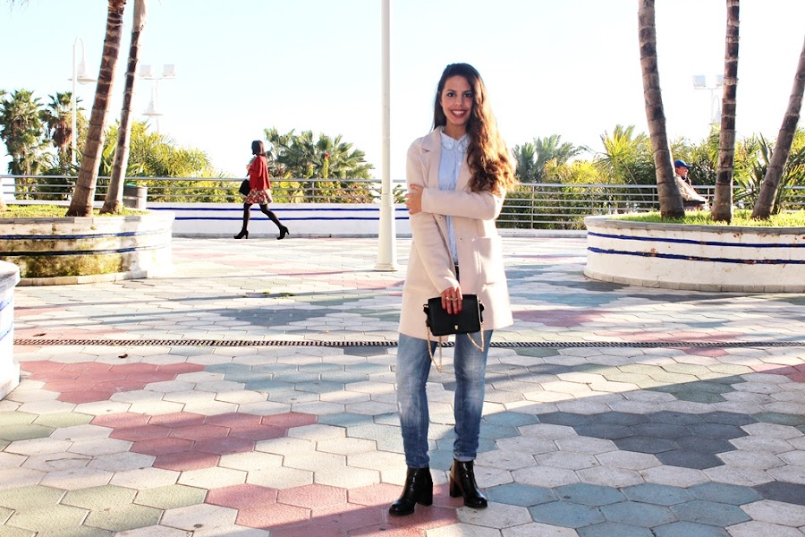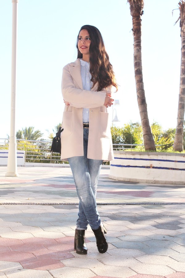 El conjunto de hoy es muy básico y cómodo. Llevo una camisa azul con rayas muy finitas blancas, que me compré el año pasado en Springfield. Los jeans Skinny son de Bershka. El abrigo es super bonito, os enseñé un conjunto con él. Es de Pull and Bear y lo podréis encontrar en las rebajas. El bolso es de Zara y los botines de Pull and Bear. Os deseo una buena semana! #FelizLunes