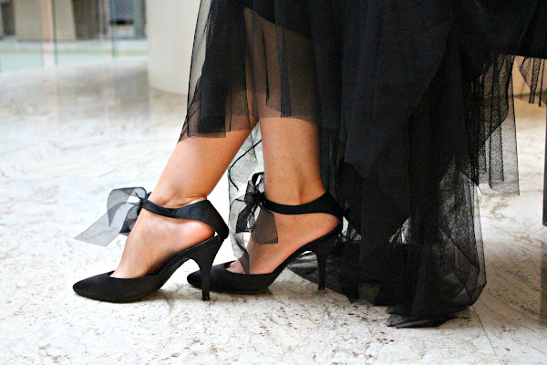 Cuando vi en Aracné esta falda negra de tul me la imaginé en un look romántico, para un evento de noche como una fiesta de postín. Sin embargo, cuando me propusieron combinarla con un top asimétrico del mismo color con un tejido semibrillante, pensé en darle un aire más rockero. ¿Cómo hacerlo? ¡Pues con unas zapatillas! Os dejo ambas versiones, a ver cuál os gusta más:
