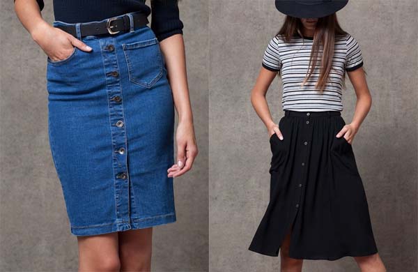 Las faldas vaqueras con botones en la parte delantera son muy favorecedoras, y además, podrás utilizar el diseño igualmente durante la primavera e incluso, durante el verano. Una tendencia que seguro que has visto en algunos de los blogs de moda de las blogueras más conocidas. Una de las propuestas más adaptables para ocasiones especiales es la falda en tejido polipiel (tejido presente en la primera fotografía del post).