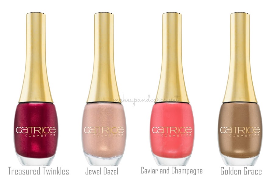 Esta edición trae 4 esmaltes con efecto perla , un rojo oscuro, un nude con efecto dorado, un tono albaricoque y un coral . Precio : 3,99€ .