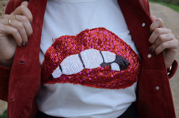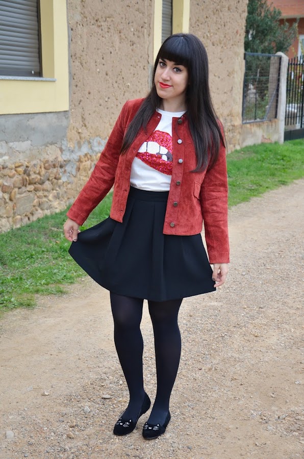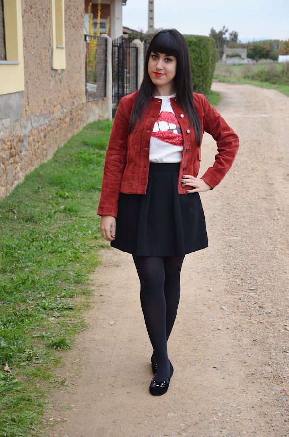 Hace ya unos meses que compré esta chaqueta de ante de Zara, según la vi me encapriche de ella y desde entonces no se separa de mi :). Esta vez la combiné con una falda también de Zara que ya os he enseñado mas veces y una llamativa camiseta de Choies. Últimamente me estoy aficionando a las prendas con lentejuelas, y es que... me encanta el brilli brilli!!! jajajaja.