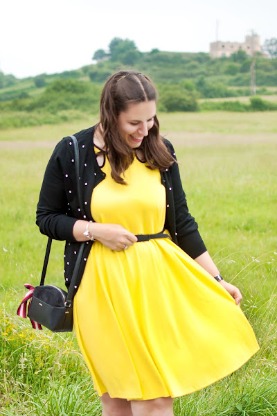 Junio inspira, hace que innove y me sumerja en otras tonalidades que nunca antes les había dado pie en mi blog. Este es uno de esos casos... ¡El amarillo! No había imaginado jamás que un color tan potente y estridente (y tan lejano del rosa :3) me gustase, que se convirtiese en el protagonista de un look. ¡Qué ilusa era! ¿A todo hay que darle una oportunidad, verdad? Este color brilla un montón en mi nuevo y bonito vestido de Rosegal, con un aire años 50 que me encanta. Le añadí un fino cinturón para marcar cintura y complementos en negro para que contrastaran fuertemente y lo potenciaran aún más. Además el lugar no puede acompañar más... :) ¿Qué os parece? ¿Os gusta este color?