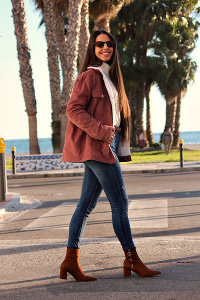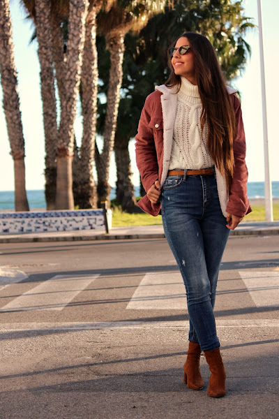 ¡Buenos días! Desde que la cazadora biker se puso de moda creo que en mi armario no han parado de entrar chaquetas de ese estilo. Tengo biker vaquera, de ante, piel... Esta que veis hoy es de Sheinside. me gustó que fuera en rosa palo porque había comprado en las rebajas de verano los botines que véis en la foto también en rosa clarito. Forman un tándem perfecto, ¿no creéis? Como aún no hace mucho ...