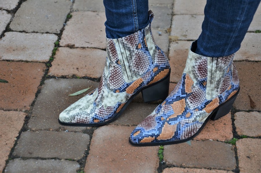 También de Shein son los botines y el bolso, ambos de estampado de serpiente. Son una auténtica maravilla, especialmente los botines eran un capricho que tenía desde hace tiempo y son comodísimos. Me llamó la atención que no coinciden los dibujos del estampado en ambos botines pero es cierto que eso le da una gracia especial. El bolso es una monada también.