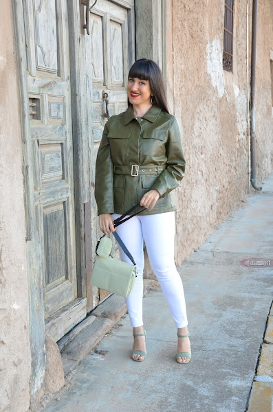 La he combinado con blanco y complementos en diferentes tonos verdes, me encanta el resultado aunque ya hay que cambiar las sandalias por botas jajaja.