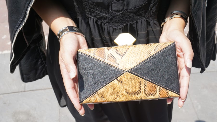 3. It is Friday and it means "party", I want to look cute, sexy and comfortable and you know all of that is easily achieved a beloved LBD (Little Black Dress) a super simple dress, which makes it different is the "double" cloth, under there is a waisted lycra dress and above there is a chiffon dress, because at dawn it gets colder nothing better than a leather jacket and because I didn’t want to stole the focus from the dress I choose simple accessories a watch a couple of bracelets, sandals and an animal print box that only carries my cel phone, credit cards and lipstick the basics for a Friday night.