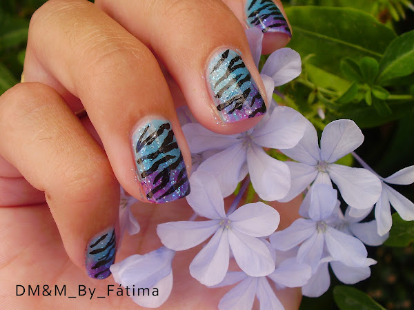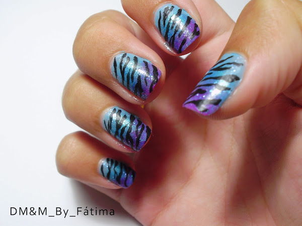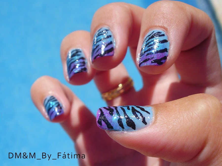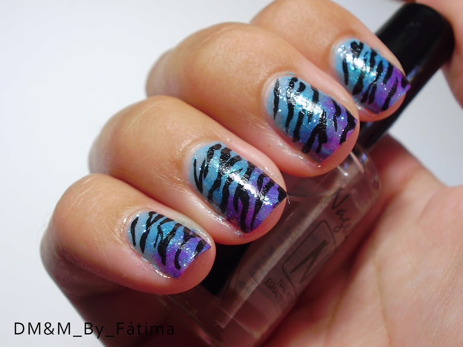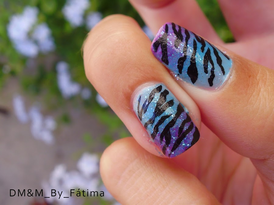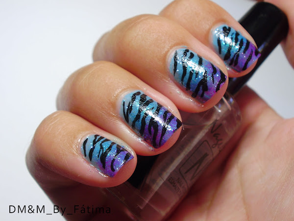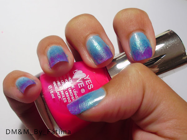 2. Con la esponja y el esmalte metalizado azul, aplicamos de tres cuartos de uña hacia afuera.