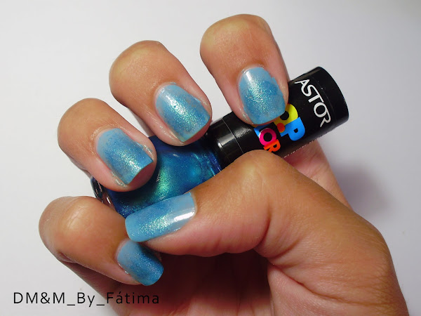 4. Aplicamos una base por toda la uña de esmalte con glitter celeste.