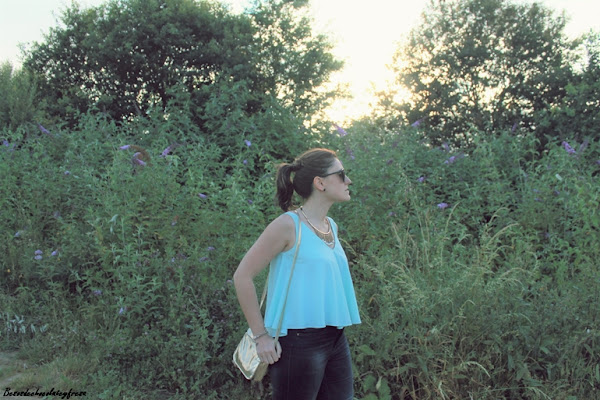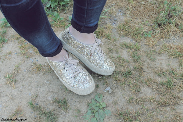 Días que refrescan y volvemos de nuevo a los pantalones largos y las chaquetas. Para esta ocasión os traigo un look en tonos celestes y brillos, porque siempre es bueno aportar un poco de luz a los looks de días grises y lluviosos.